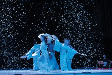 Nihon Buyo, literally "Japanese dance," is a modern art form performed by artists who train vigorously in kabuki dance. Geimaruza, Japan's young and rising stars-all alumni of the prestigious Tokyo University of the Arts-grace the stage with a gorgeous program including traditional kabuki and folk dances and original neo-traditional arrangements. Performed alongside an ensemble of six musicians playing traditional Japanese instruments.